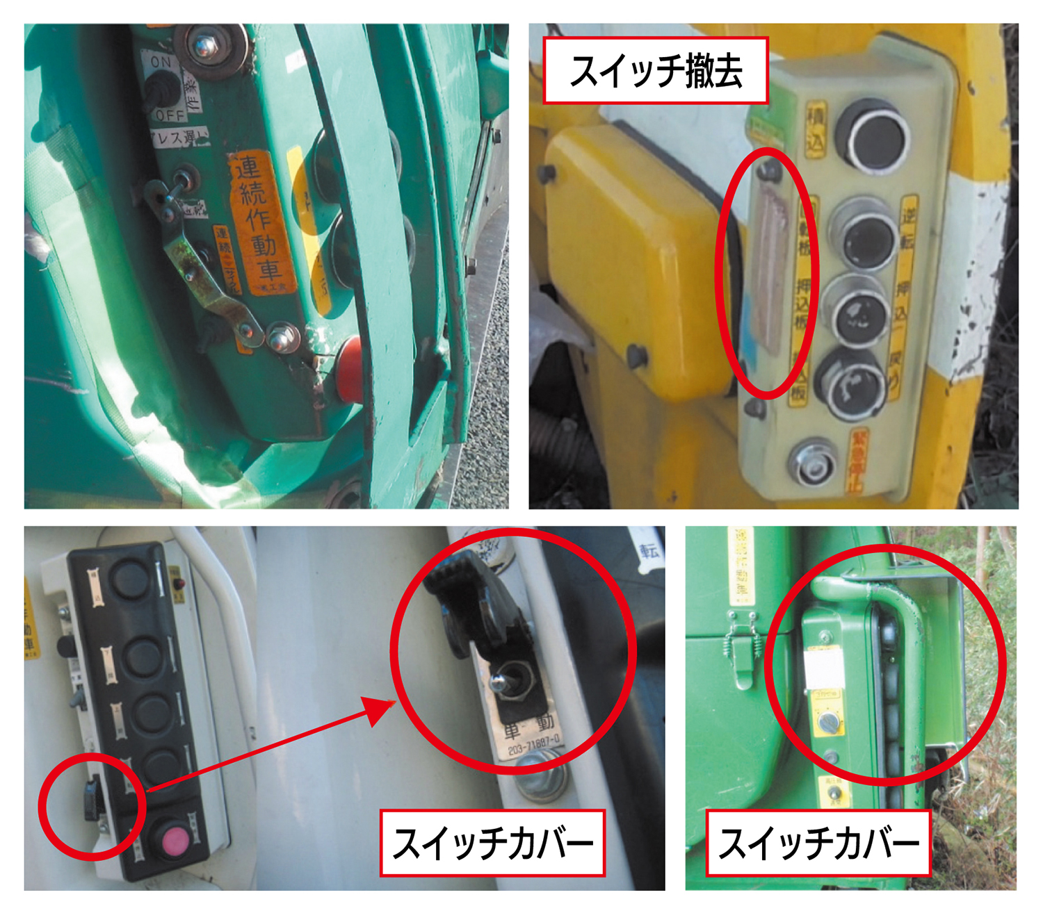 連続作業スイッチを使用しないよう又は使用不可能な状態にする。