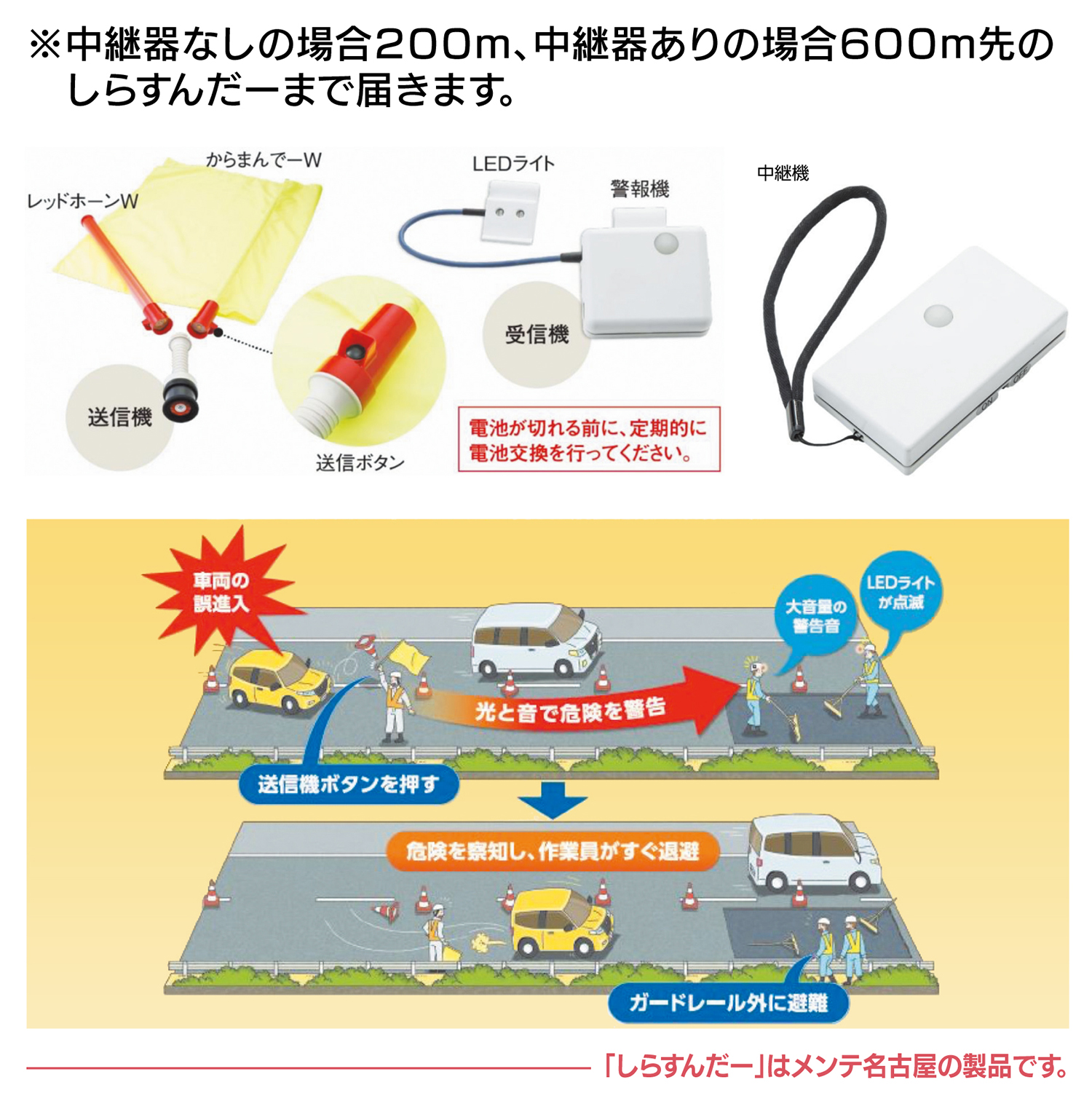 工事規制内の全ての作業従事者装着するものとし、現場と現場監視員の距離や、規制延長が長くなる場合には、送信機に加えて中継器を常備すること。
