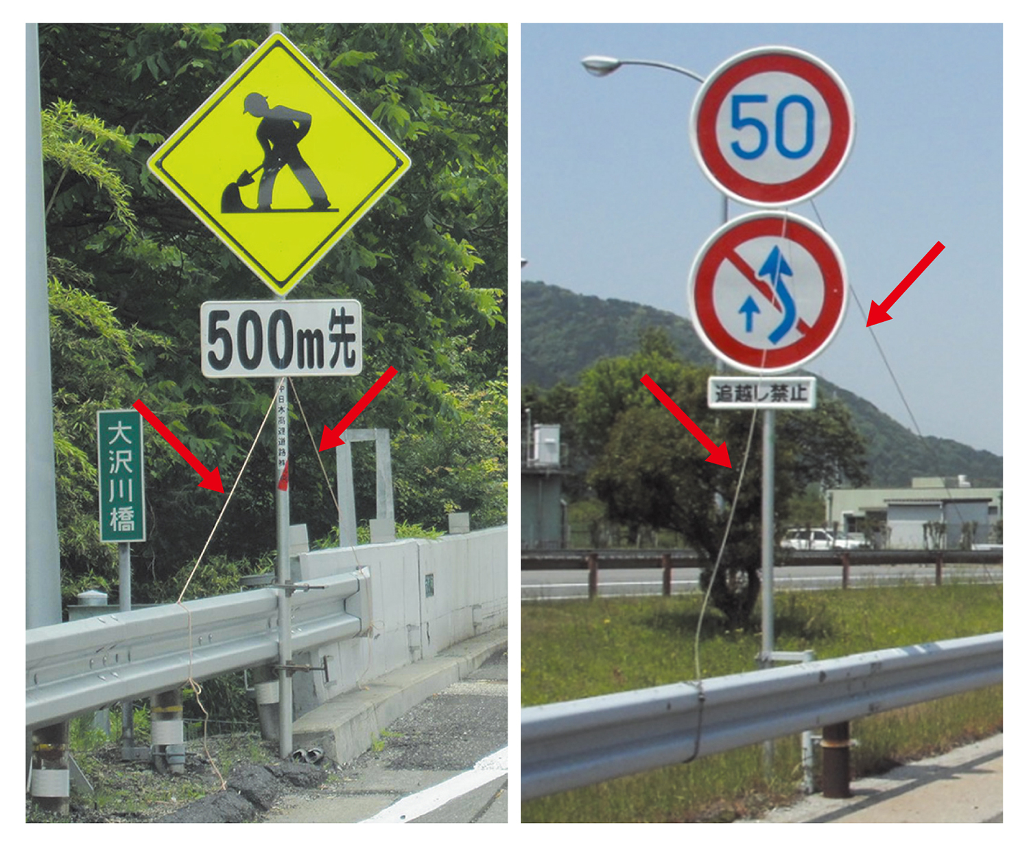 規制標識転倒防止ロープ