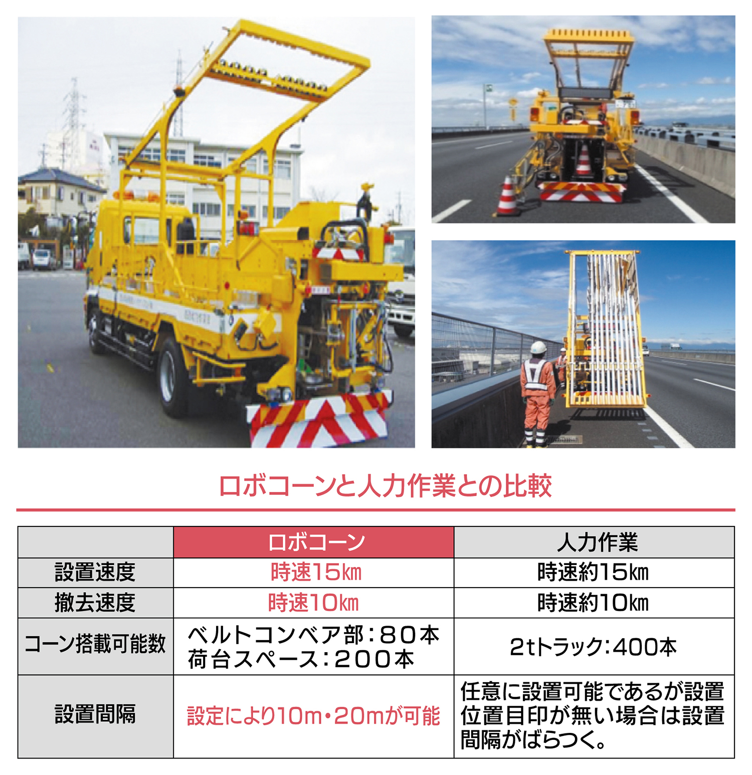 規制ラバーコーンの設置及び撤去をロボコーンを使用して実施する。
