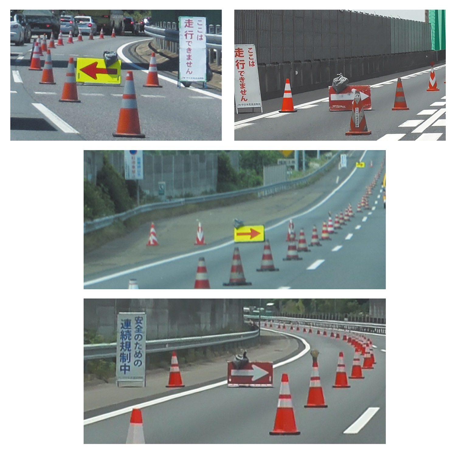 一定間隔毎にラバーコーン等で規制内に仕切りを設置する。