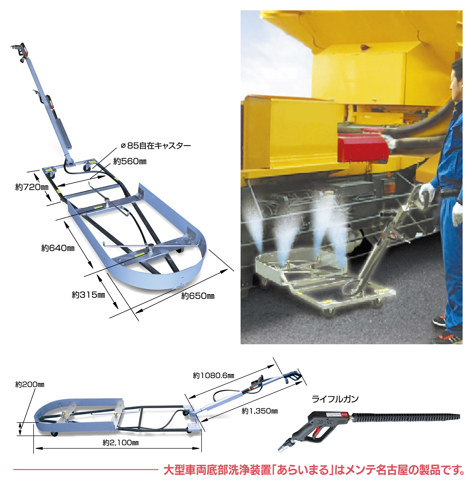 雪氷車両の下面についた塩化ナトリウムを高圧洗浄水で除去し、塩害による腐食を防止する。