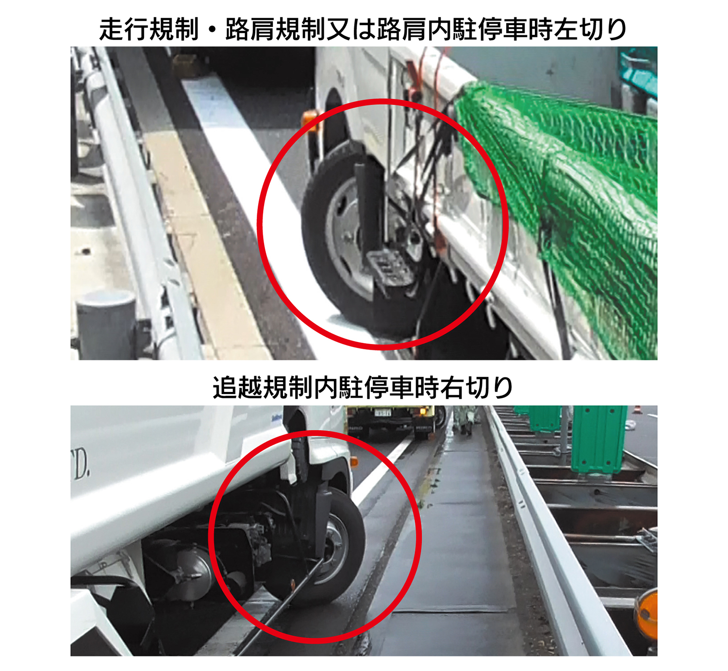 ただし規制設置の場合の輪留めは、短時間のため設置しない場合がある。