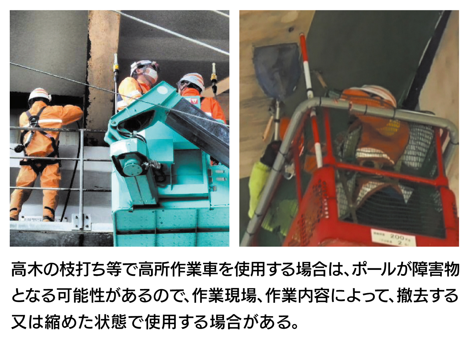 高所作業車のバケット、デッキによる作業員の挟まれ防止