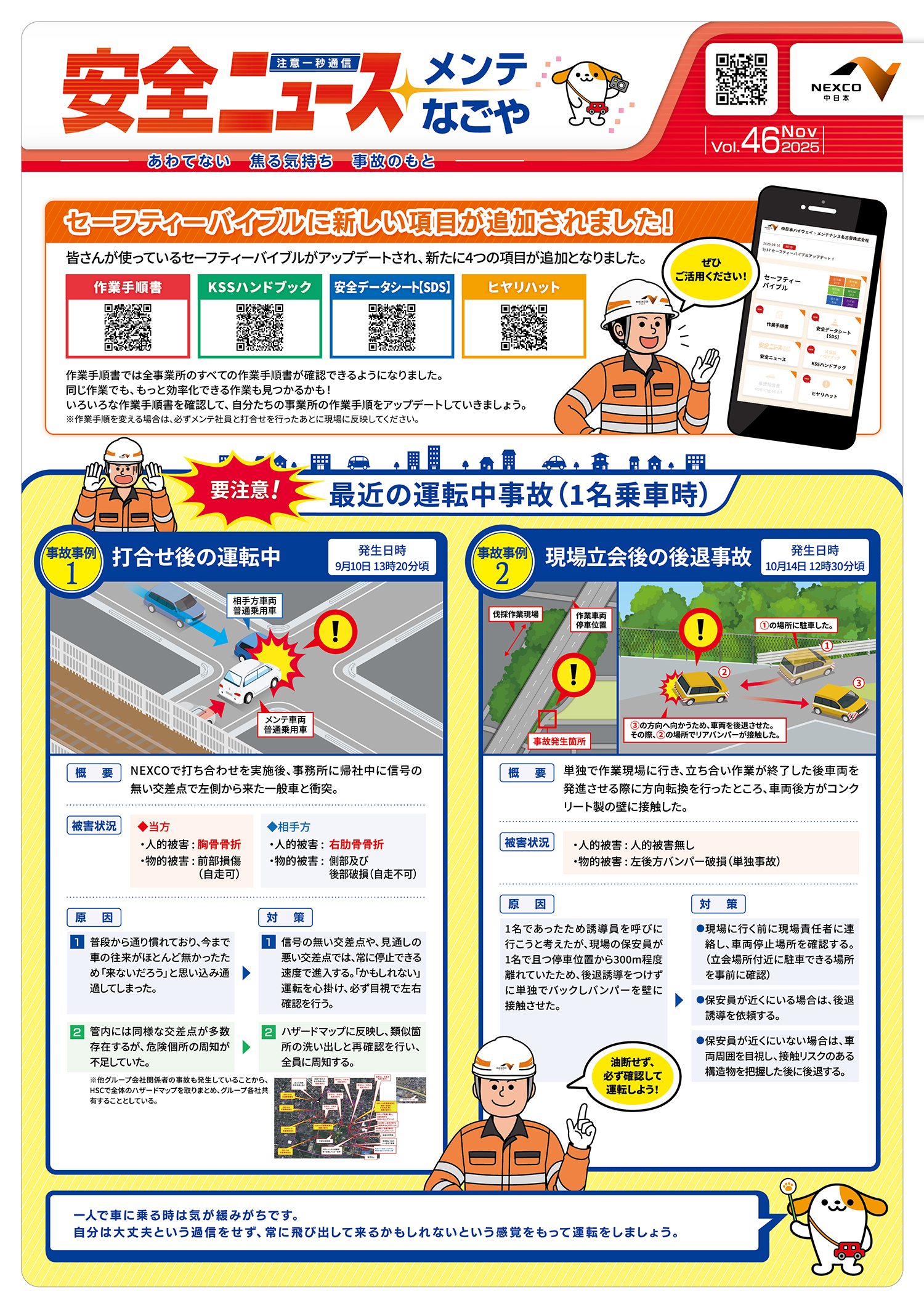 2025年11月号 セーフティーバイブル項目追加と運転中事故事例