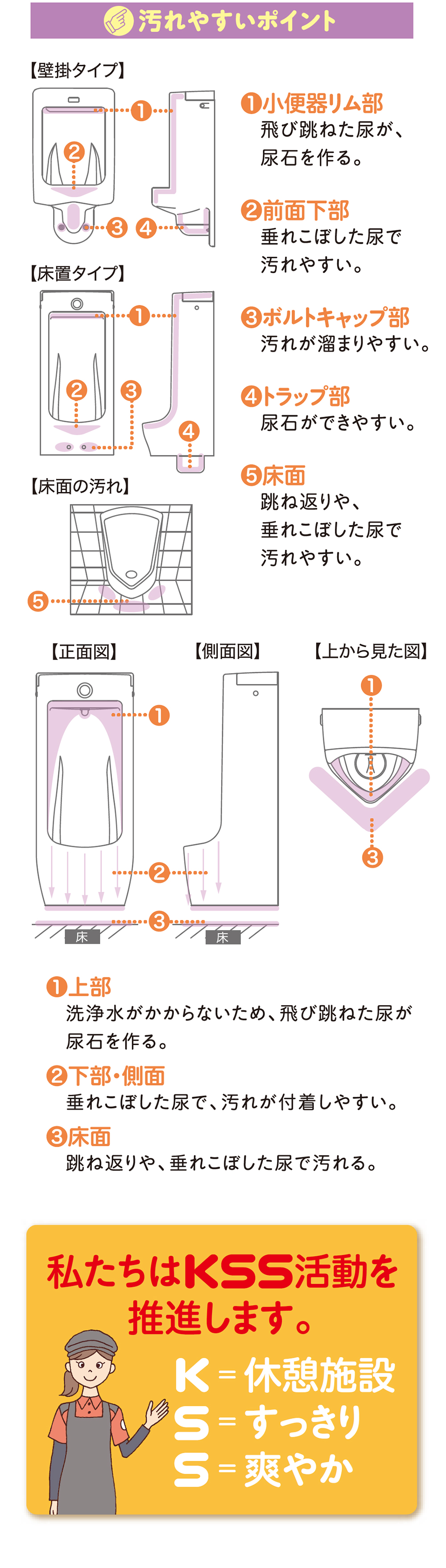 小便器の汚れやすいポイント